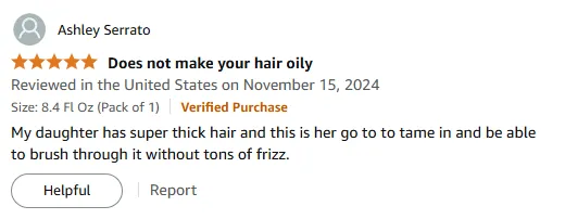 My daughter has super thick hair and this is her go to to tame in and be able to brush through it without tons of frizz.